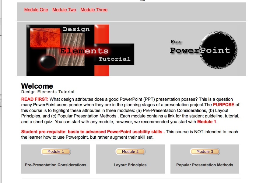 School Project, class: Problems in Instructional Design. I project managed this course project and the team was composed of two other classmates. I did the web design, programming, design quiz, input in QuizBuilder. ONLY MODULE 2 IS OPERATIONAL